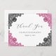 Carte Postale Hot Pink and Black Floral Lace Wedding Thank You