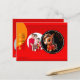 Cute baby Horse wearing Chinese cloths in cartoon style + round frame for your photo onto a red background. Design on postcard with the same baby horse + speech bubble with greeting in back of the card. Matching greeting card, sticker and more soon...