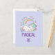 Une carte postale au design mignon et drôle. Un maïs blanc avec crinière et queue de couleur pastel et 3 petites étoiles sur son dos. Un arc-en-ciel coloré au-dessus. Entourée d'une couronne circulaire composée de nuages, de coeurs et de fleurs, elle offre un flair supplémentaire. Le texte dit Magical AF. Drôle et adorable.