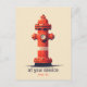 Cette carte postale de couleur claire présente une illustration d'une borne d'incendie orange-blanc et une devise personnalisable. Le texte par défaut "à votre service" fournit une façon humoristique de dire à votre ami / famille que vous êtes là pour eux avec une signature personnalisable "depuis XXXX".