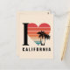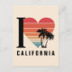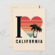 Envoyez un peu de soleil de l'État d'Or avec cette carte postale élégante avec un design audacieux I ❤️ California sur un arrière - plan blanc d'époque chaleureux. L'agencement attrayant comprend un grand "I", un coeur rétro rayé aux teintes inspirées du coucher de soleil (rouge, orange, taupe, vert, turquoise et bleu), des palmiers venteux et un texte personnalisable, parfait pour présenter votre ville balnéaire de Californie préférée comme Père Noël Monica, Pismo Beach, San Francisco ou n'importe où vous appelez la maison. Idéal pour les salutations de vacances, les dates de fin d'année, les tournois, ou tout simplement partager un petit amour de la côte ouest. Conseil de personnalisation : Ajustez l'espacement des lettres lorsque vous customisez votre nom de ville pour vous assurer qu'il s'aligne uniformément sous le design du coeur. Parfait pour les voyageurs, les locaux et les collectionneurs de cartes postales qui veulent une touche personnelle avec le charme côtier.