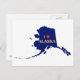 Une silhouette bleue, ou carte, de l'état de l'Alaska avec le slogan "I Heart (Love) Alaska." Venez visiter The Great Land.