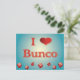 Carte Postale I Love Bunco en rouge avec des dés rouges