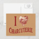 La charcuterie est un terme de la gastronomie française qui décrit les viandes conservées. Un cadeau parfait pour un gourmet ou un amateur de nourriture, ces tee - shirts graphiques et autres objets ont l'expression "I heart charcutrie", avec le coeur formé de saucisses, jambon, terrines et autres conserves de viande