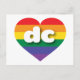 Cette carte postale est ornée d'un coeur de fierté arc-en-ciel recouvert de lettres coques dc blanches, boldface et basses, une abréviation amusante pour le District de Columbia. Le revers de la carte postale est vide, en attendant votre texte personnalisé ou vos sentiments manuscrits. Montrez vos vraies couleurs, soutenez l'égalité dans le mariage et célébrez le gay pride.
