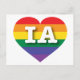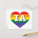 Cette carte postale est dotée d'un coeur orné d'orgueil arc-en-ciel et de lettres IA. Au-dessus des rayures, dans le coeur sont les lettres majuscules IA, l'abréviation officielle de l'état de l'Iowa, dans une police blanche en gras. Le verso de la carte est vide, en attendant votre texte personnalisé ou vos sentiments manuscrits. Montrez vos vraies couleurs, soutenez l'égalité dans le mariage et célébrez le gay pride.