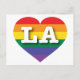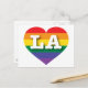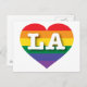 Cette carte postale présente un coeur avec un motif de fierté arc-en-ciel et les lettres majuscules grasses, blanches, LA, l'abréviation officielle pour Louisiane, l'état pélican ou Los Angeles, la ville des anges. Le revers de la carte postale est vide, en attendant votre texte personnalisé ou vos sentiments manuscrits. Montrez vos vraies couleurs, soutenez l'égalité dans le mariage et célébrez le gay pride.