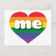 Cette carte postale présente un coeur avec un motif de fierté arc-en-ciel et les lettres coques, blanches et audacieuses, moi, une version ludique de l'abréviation du Maine, l'état des pins. Le revers de la carte postale est vide, en attendant votre texte personnalisé ou vos sentiments manuscrits. Montrez vos vraies couleurs, soutenez l'égalité dans le mariage et célébrez le gay pride.
