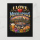 A vibrant, nostalgic city portrait celebrates Minneapolis with its skyline, river, iconic bridge, and beloved local symbols glowing at sunset.