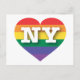 Cette carte postale présente un coeur arc-en-ciel contenant les lettres majuscules blanches et audacieuses NY, l'abréviation officielle de New York, l'état de l'empire. Le verso de la carte postale est vide, en attendant vos sentiments manuscrits ou le texte customisé. Montrez vos vraies couleurs, soutenez l'égalité dans le mariage et célébrez le gay pride.
