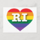 Cette carte postale présente un coeur arc-en-ciel contenant les lettres majuscules blanches et audacieuses RI, l'abréviation officielle de Rhode Island, l'état de l'océan. Montrez vos vraies couleurs, soutenez l'égalité dans le mariage et célébrez le gay pride.