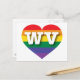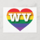 Cette carte postale est ornée d'un coeur de fierté arc-en-ciel orné de lettres majuscules blanches et audacieuses, WV, l'abréviation officielle de Virginie-Occidentale, l'état de la montagne. Montrez vos vraies couleurs, soutenez l'égalité dans le mariage et célébrez le gay pride.