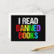 I read banned books. A cool rainbow postcard for people who like reading LGBTQ novels and other things that have been removed from the school library. A cute liberal gift.