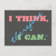 This postcard displays a positive thinking phrase (© Evelyn Mancino) which is a re-write on the famous Descartes quote, "I think therefore I am". I have placed it in an artful design. Send it to someone who needs their spirits lifted.