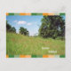 Ich bin Postkarten, Sommer à Farbe. Die Karte Ich bin fröhlich zeigt eine Sommerwiese mit blauem Himmel und Bäumen im Hintergrund.
