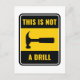 This Is Not a Drill Hammer drôle outil mot carte postale avec un panneau de sécurité jaune / noir et le slogan du jeu de mots : "This Is Not a Drill". Une carte de construction amusante unique pour vos amis qui travaillent dans le bâtiment et les marteaux ou d'autres utilisateurs d'outils.
