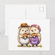 Carte Postale Illustration aquarelle de deux hérissons avec porc
