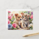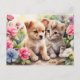 Carte Postale Illustration de chaton et de chiot dans le jardin