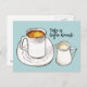 Il s'agit d'un tableau aquarelle avec contour dessiné avec des stylos à brosse, Il y a un café dans une tasse sur une soucoupe et de la crème à côté. C'est une illustration mignonne et moderne. Il est écrit "Prenez une pause café" dans l'illustration.