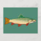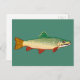 Une carte postale pour un amoureux de la pêche ou un pêcheur ! Image d'un poisson de truite illustrant le poisson d'eau douce pour tout amateur de pêche ou amateur de poisson. Cette illustration cool est définie sur un arrière - plan vert personnalisable.