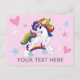 Carte Postale Illustration de licorne rose rustique et d'étoiles