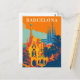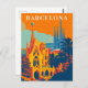 Carte Postale Illustration de voyage rétro à Barcelone en Espagn