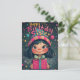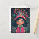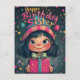 C'est un magnifique modèle d'anniversaire illustré avec une fille mignonne aux grands yeux, aux cheveux foncés, aux joues roses et au sourire éclatant. Elle porte un chapeau rayé coloré avec un pompon, qui correspond à l'arrière-plan animé et festif rempli de bulles flottantes, d'étoiles et de paillettes magiques. La typographie chaleureuse et dessinée à la main de "Joyeux Anniversaire Sœur" ajoute une touche ludique, complétant le thème de joie et de célébration. Le cadeau emballé avec un nœud décoratif renforce le thème d'anniversaire, ce qui en fait une carte de vœux idéale.
