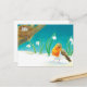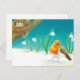 Carte Postale Illustration Red Robin Bird & snowdrops
