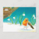 Carte Postale Illustration Red Robin & Early Spring Snowdrops
