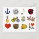 Une jolie composition graphique : ancre, diamant, note musicale, coccinelle, ananas, vélo, fleur, chats, coeur, hibou, poisson, je t'aime...