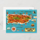 Une merveilleuse carte illustrée vintage de Porto Rico avec les noms de lieux en espagnol réutilisés sur une carte postale.