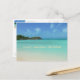 Carte postale aux couleurs inoubliables de Turks and Caicos : eau turquoise limpide, sable platine, ciel bleu profond, nuages de plumes blanches et verdoyants au loin. Le texte personnalisable devant la carte dit, "I'm In A "Turks & Caicos" State Of Mind".