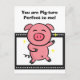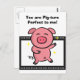 Un mignon doodle d'un cochon rose qui pose joyeusement avec des étincelles qui l'entourent et il est si parfait qu'il surgit de la bordure de film de caméra. La légende dit : "Tu es un cochon parfait pour moi !" qui est un jeu sur le terme "Picture Perfect". Un dessin humoristique et délirant pour taquiner et sourire sur le visage du destinataire. Design par Rusty Doodle.