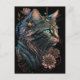 Carte Postale Imaginaire bleu oeil chat avec fleurs IA art