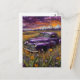 Carte Postale Imaginaire Vechicle violet rétro dans une prairie