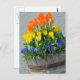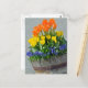Tulipes à ressort orange et jaune dans la carte postale du planeur de tonneaux