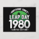 Cette conception de style rétro vintage pour anniversaire d'un jour bissextile est parfaite pour un bébé de jour bissextile né le jour de l'année bissextile 1980 et qui a été génial depuis ! Idée de cadeau d'anniversaire amusante et heureuse pour un "leaper" et un "leapling" né éternellement jeune le 29 février jour bissextile 1980 ! Caractéristiques - Génial depuis le jour bissextile 1980 - Édition limitée - Meme d'anniversaire du 29 février année bissextile avec graphique de clip art rétro vintage en style années 80 avec silhouette de grenouille souriante portant une couronne. Célébrez votre année d'anniversaire de jour bissextile toute l'année, chaque année !