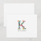 Carte de note plate comportant une initiale florale de monogramme, lettre "K" avec le nom dessous.