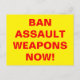 Interdire les armes d'assaut maintenant ! Montrez votre soutien au contrôle de bon sens des armes à feu pour empêcher les fusillades à l'école et d'autres violences à l'arme à feu avec cette carte postale audacieuse, très visible, sans aucun sens en l'envoyant par la poste aux représentants de votre gouvernement. Vous pouvez facilement customiser et modifier la couleur, la taille, le libellé et le style de police du texte avec le modèle personnalisé Zazzle.
