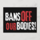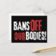 Montrez votre soutien au droit des femmes à l'autonomie corporelle avec cette carte postale pro-choix "Bans Off Our Bodies" avec une police blanche et rouge grunge sur arrière - plan noir.