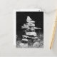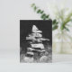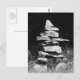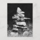 Une photo en noir et blanc frappante d'un inukshuk rocheux, utilisé comme marqueur directionnel dans les temps historiques mais maintenant couramment vu sur les bords de route et dans les parcs.