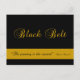 Invitations amis et la famille pour assister à votre test de ceinture noire des arts martiaux et vous regarder promouvoir au rang estimé de ceinture noire avec cette carte postale d'invitation de test de promotion de ceinture noire personnalisée. La carte est noire avec un groupe d'or et présente le proverbe chinois inspirant et motivant "Le voyage est la récompense".