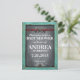 Invitation à une Baby Shower avec Tableau Noir Rustique. Une invitation de grande qualité pour une douche de bébé ou un mariage champêtre, avec un élément de cadre turquoise. À l'intérieur se trouve une texture de tableau noir qui contient tous vos détails. 3 étoiles métalliques et un bandeau de cuir rouge ornent le haut de la page avec des rivets et des supports métalliques. Des fioritures fantaisistes se trouvent également sur cette invitation. Des produits assortis comme des invitations de mariage et des cartes de réponse sont également disponibles.