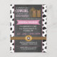 Cette invitation de baby shower de carte postale de cowgirl montre des bottes de cowgirl et une corde occidentale accrochée sur le côté. L'arrière - plan est un tableau noir avec des empreintes de vache dans l'arrière - plan.