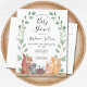 Famille Invitation et amis pour célébrer cette occasion joyeuse avec cette invitation à l'aquarelle mignonne et capricieuse. Ces amis forestiers, renard, raton laveur, hérisson, lapin et écureuil sont entourés de verdure rustique. Facile à personnaliser. Aquarelle originale © Michele Davies.