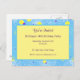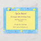 Des points violets et jaunes colorés sur un arrière - plan bleu texturé confèrent un design d'invitation d'anniversaire très personnalisé.