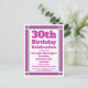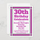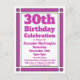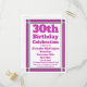 Envoyez des invitations à une fête du 30e anniversaire avec cette carte postale Geométrique Purple 30e Anniversaire Invitation. Customisé avec vos informations personnelles et personnelles.