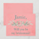 Carte Postale Invitation de Bridesmaid rose et vert floral