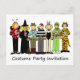 Enfants caricaturaux en robe de fantaisie, y compris un cowboy, pirate, docteur, coccinelle, etc Les mots 'Costume party Invitation' sont sous l'image.