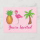 Carte Postale Invitation de fête Flamant rose rose Palm Tree Ana